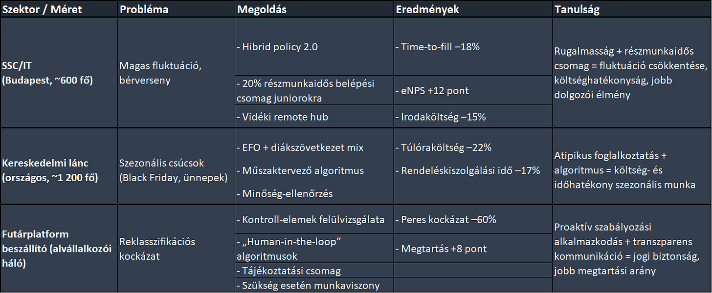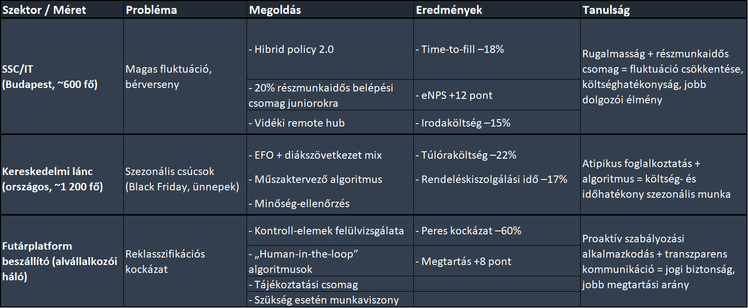 Áttekintő táblázat: Gyors esettanulmányok az atipikus foglalkoztatásra (Magyarország)